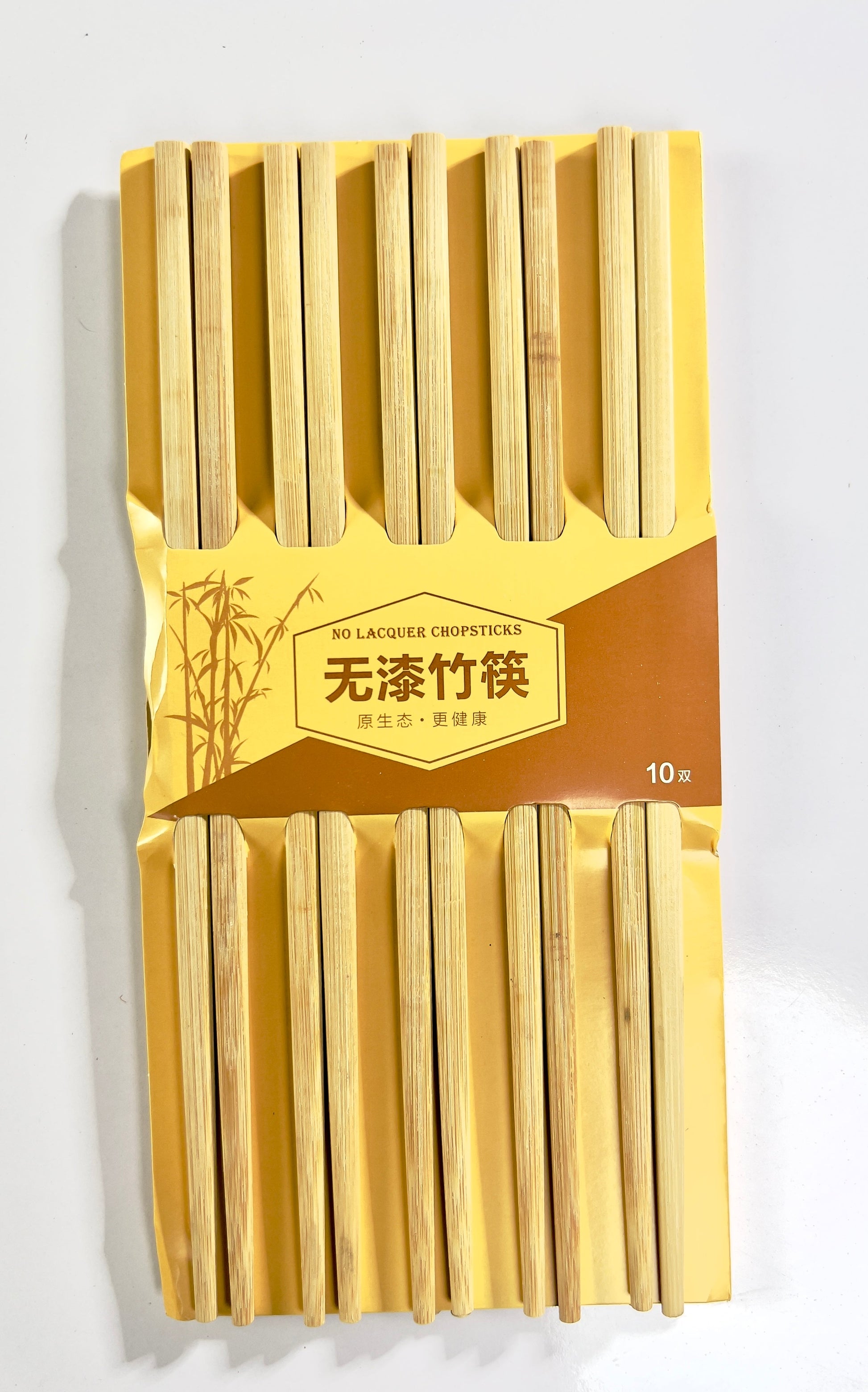 Natural bamboo chopsticks with no coating, safe, eco-friendly, and reusable.